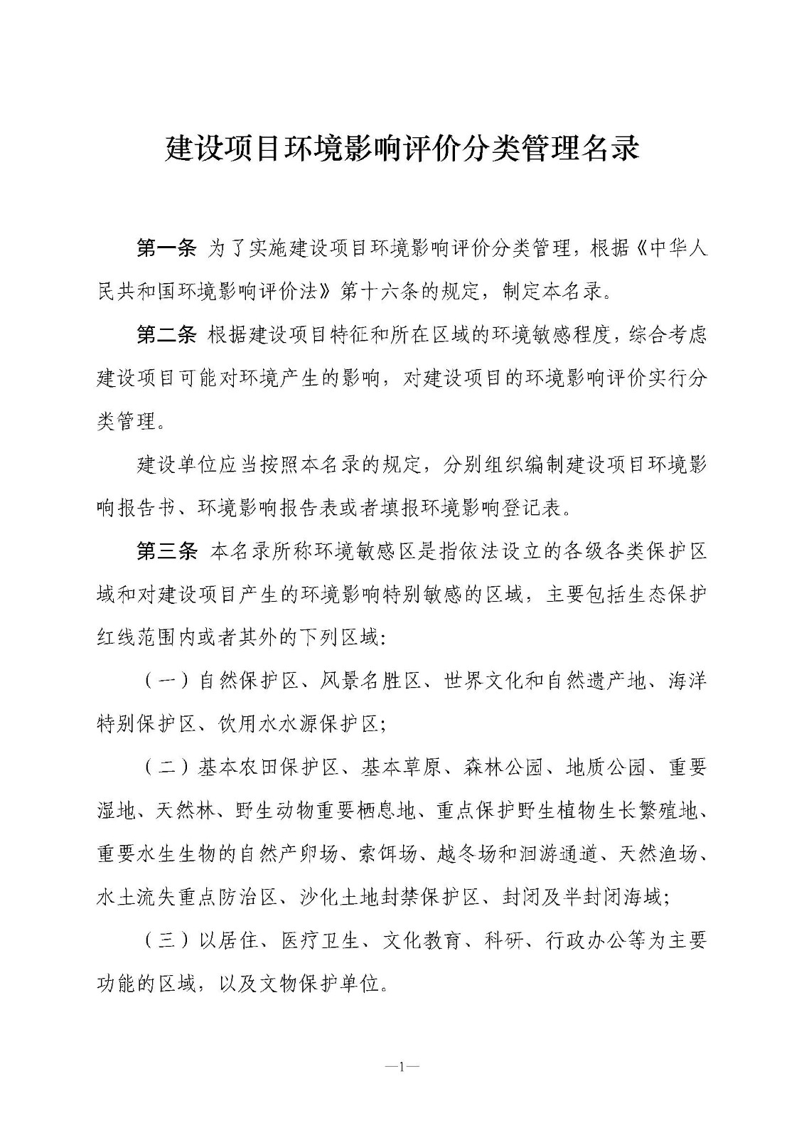 第一條 為了實(shí)施建設(shè)項(xiàng)目環(huán)境影響評(píng)價(jià)分類管理,根據(jù)《中華人民共和國(guó)環(huán)境影響評(píng)價(jià)法》第十六條的規(guī)定,制定本名錄。